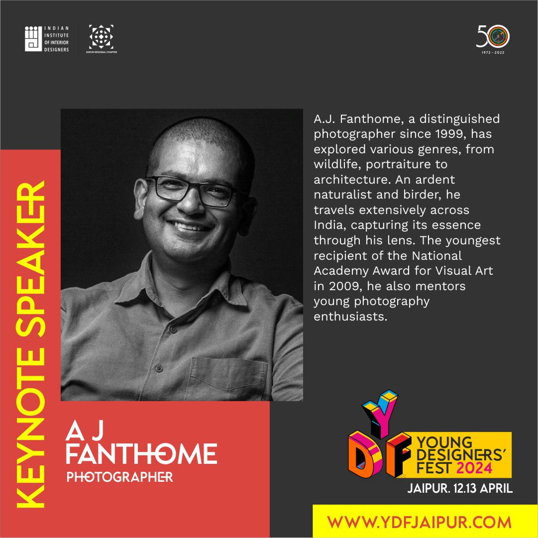 A.J. Fanthome, a distinguished photographer since 1999, has explored various genres, from wildlife, portraiture to architecture. An ardent naturalist and birder, he travels extensively across India, capturing its essence through his lens. The youngest recipient of the National Academy Award for Visual Art in 2009, he also mentors young photography enthusiasts.